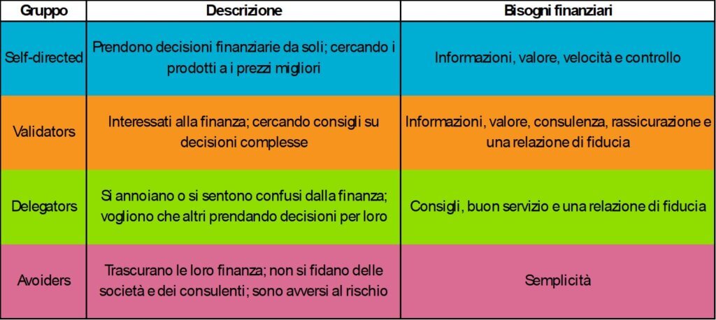 Una celebre ricerca di Forrester Research individua quattro profili di risparmiatori: