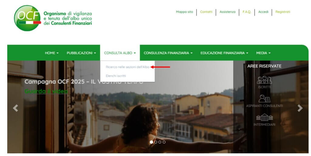 Tutti i consulenti finanziari per poter esercitare la professione devono essere iscritti all’Albo OCF (Organismo di vigilanza e tenuta dell’Albo unico dei Consulenti Finanziari). Sul sito dell’OCF ci sono gli elenchi di tutti gli iscritti divisi in tre categorie: