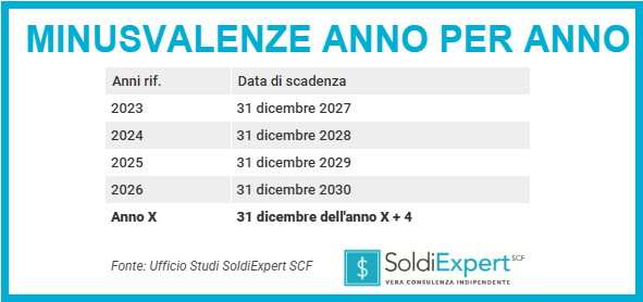 Le minusvalenze residue e le relative scadenze sono visibili nel cosiddetto “zainetto fiscale”, disponibile presso il proprio intermediario.